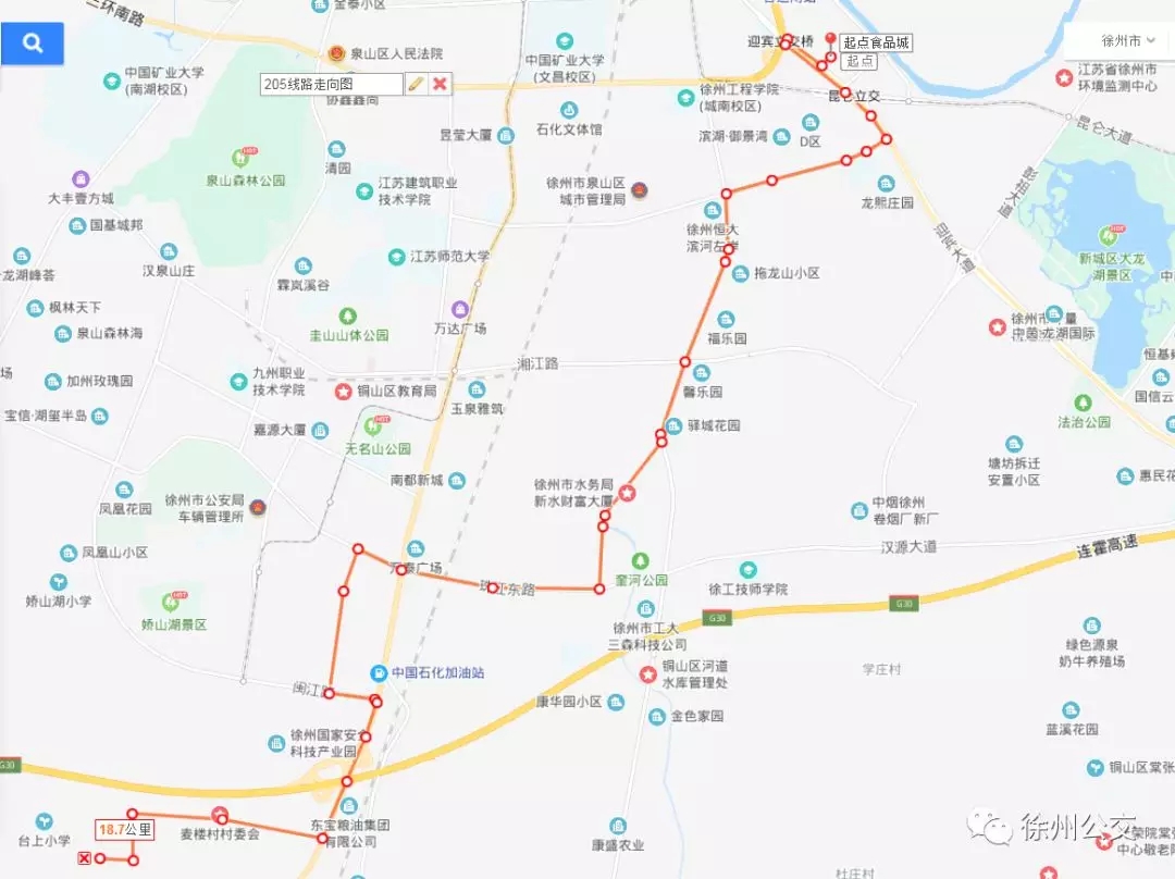 具體??空军c(diǎn):淮海新能源、嘉樂(lè)園、麥樓村、淮海國(guó)際城、安科園、格利爾、東方傳動(dòng)、徐鍛科技產(chǎn)業(yè)園、財(cái)發(fā)鋁業(yè)、汽車(chē)產(chǎn)業(yè)園、醫(yī)藥產(chǎn)業(yè)園、高新區(qū)管委會(huì)、精密制造、驛城村、馨樂(lè)園、福樂(lè)園、東南郡小區(qū)、徐州中專、淮海文博園(食品城)。