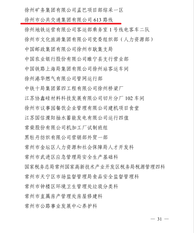喜訊!公交613路線榮獲“江蘇省工人先鋒號”稱號