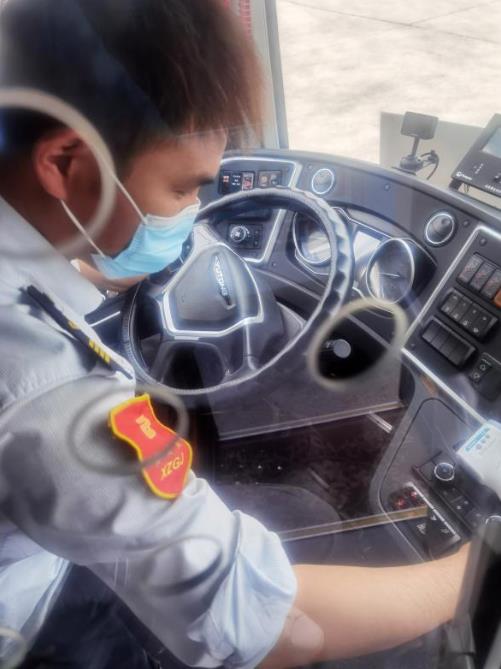 新區(qū)公司1780車駕駛員白延奇駕駛的19路線,由銅山新區(qū)總站發(fā)往徐州火車站,全程接近30.5公里,途徑居民區(qū)、學(xué)校眾多,每天要跑3趟,6個單程,不堵車的時候一個單程需要一個小時。“由于工作的特殊性,即便天氣再熱我們也不敢多喝水,早晚高峰堵車至少得1個多小時才能回到主站,只有到終點站才能多喝幾口水,抓緊時間上個廁所。”駕駛員白延奇樣說道。為了給市民乘客提供溫馨、舒適的車廂環(huán)境,每天朝陽還未升起,白延奇就到達停車場,檢查車輛狀況、擦拭發(fā)動機、刷洗輪胎、打掃車輛衛(wèi)生,在確?!拔鍍粢涣痢钡耐瑫r,對車廂進行全面消毒,不一會,白延奇的額頭就布滿了汗珠,身上的行業(yè)服早已濕透,緊緊地貼在皮膚上。