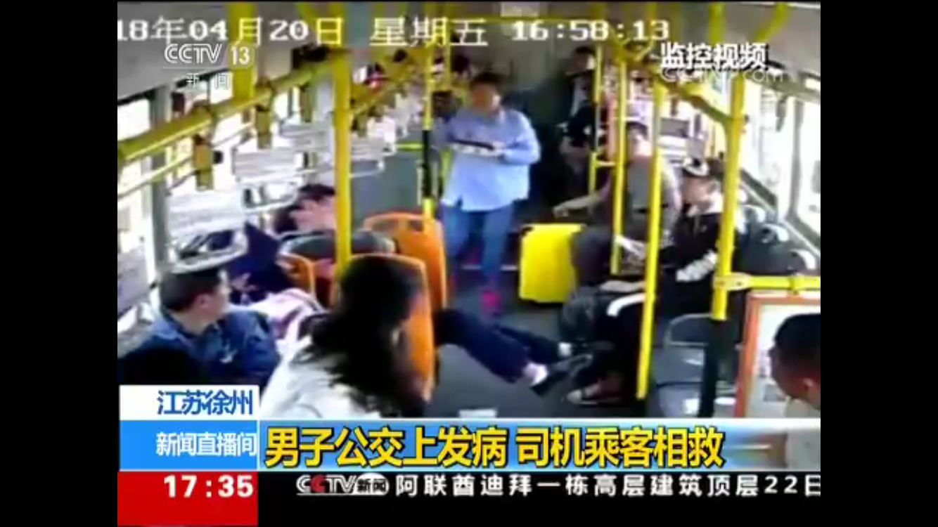 4月20日下午4點58分,26路自編號5025車從徐州開往賈汪途中,一名坐在車中間座位上的男乘客突然倒在了旁邊乘客身上,口吐白沫,渾身抽搐打著哆嗦,情況十分危急。乘務員昝昱安和周圍乘客立即上前查看,駕駛員耿德志也急忙停下車趕來。