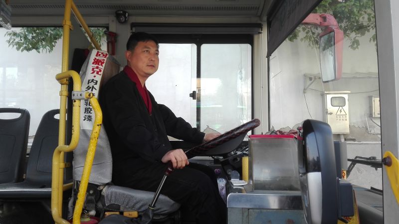 王泉,40歲,20路公交車駕駛員,2000年進(jìn)入公交,一干就是16年?!霸谄椒驳膷徫簧?,只有踏踏實(shí)實(shí)、勤勤懇懇,才能干好自己的工作,只要認(rèn)真、充滿熱情的工作,再平凡的崗位也會(huì)綻放光彩”,這是王師傅的工作理念,他也是這樣要求自己的。每天早班6:50發(fā)車,王師傅總是提前兩個(gè)小時(shí)從家里出發(fā),用他的話說就是,每天出場前的工作十分重要,給車輛加氣,打掃衛(wèi)生,檢查車輛輪胎氣壓、機(jī)油、冷卻液等安全部件這都是每天出場前必須要做的工作,只有把這些做好了,才能安心開始一天的工作。