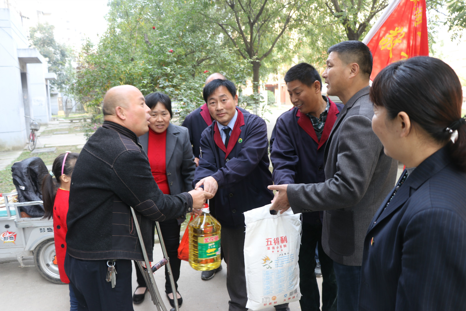 1028日重陽節(jié),全國“敬老文明號(hào)”14路線志愿者服務(wù)隊(duì),來到惠民小區(qū)開展“雙關(guān)愛”活動(dòng),關(guān)愛空巢和半失能老人,來到“一對(duì)一”結(jié)對(duì)幫扶的張金富、張金設(shè)、劉云強(qiáng)等4位失能和半身能老人家中,為他們送去了米、面、油等生活品。