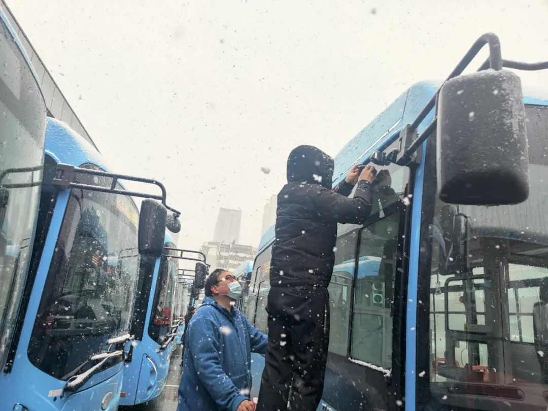 114日上午,徐州市氣象臺發(fā)布道路結(jié)冰黃色預(yù)警[Ⅲ/較重],氣溫驟降,徐州迎來了2023年第一場冬雪。面對寒潮雨雪冰凍惡劣天氣,公交集團(tuán)立即啟動特殊天氣應(yīng)急預(yù)案,集團(tuán)黨委委員、副總經(jīng)理丁玉華帶領(lǐng)安全環(huán)保部人員上線檢查,基層單位分管安全負(fù)責(zé)人以雪為令,多措并舉做好寒潮雨雪大風(fēng)天氣公交安全運營工作,保障市民安全便捷出行。