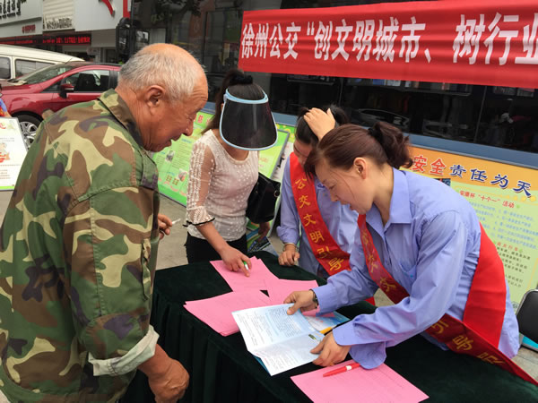 616上午,賈汪公司組織駕乘人員身披綬帶,在賈汪區(qū)中心步行街開展“創(chuàng)文明城市,樹行業(yè)新風(fēng)”便民咨詢活動,發(fā)放《徐州公交乘車指南》,征求市民建議和意見,受到廣大市民好評。